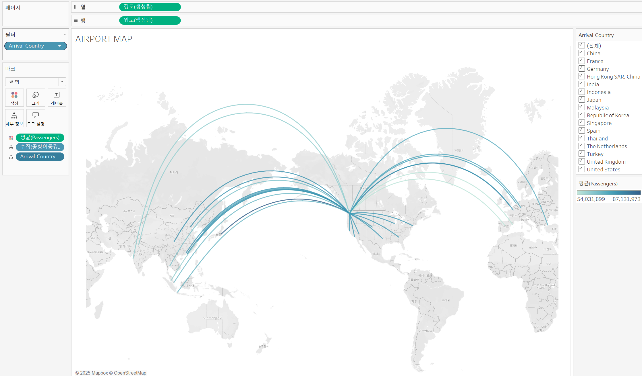 MAKELINE(도착, 출발) : 두 점을 토대로 경로 연결 시각화