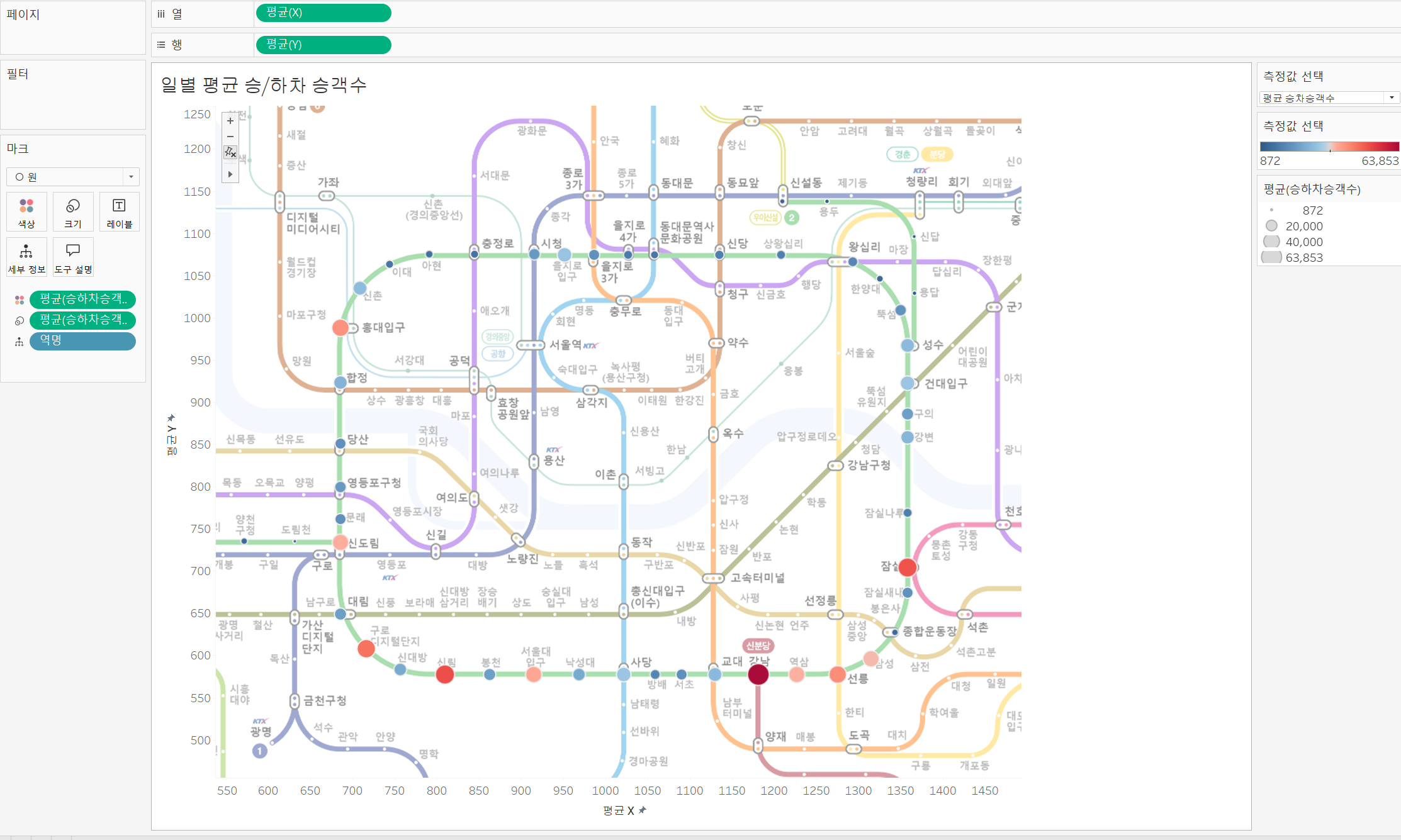 # 배경 이미지를 이용한 CUSTOM MAP 활용 - 일별 승/하차 승객수