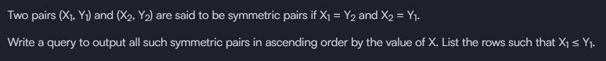[해커랭크-Advanced Join] Symmetric Pairs 본문